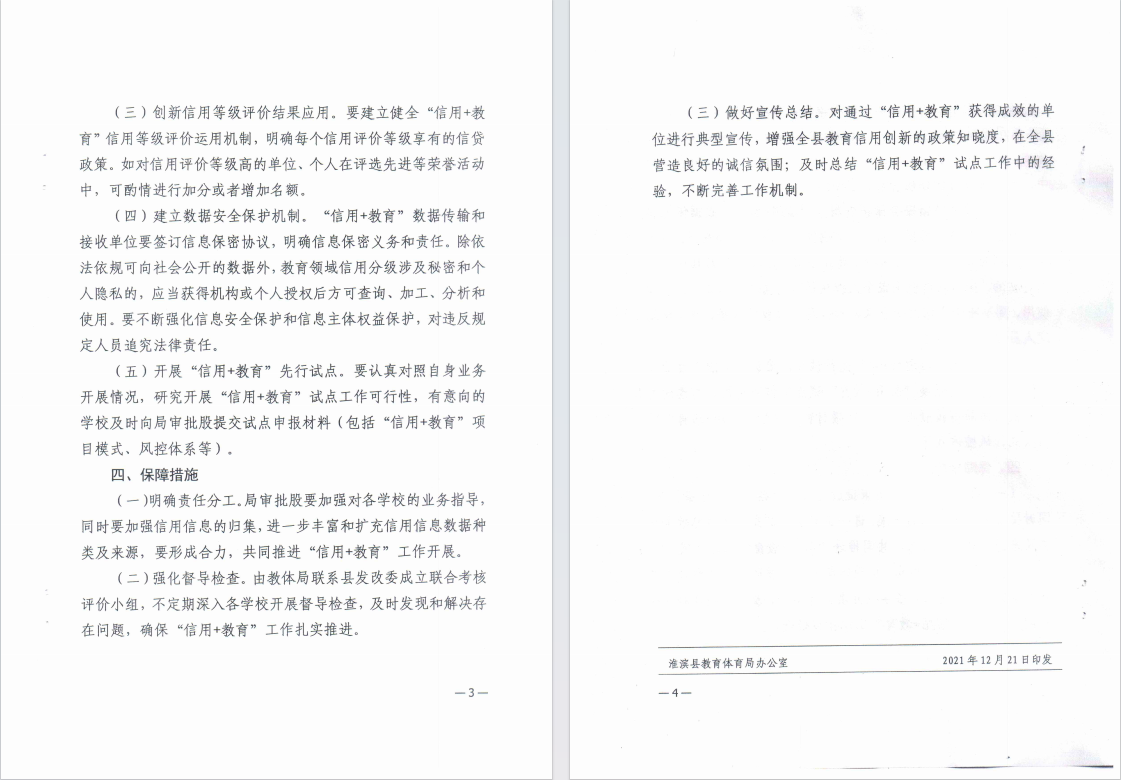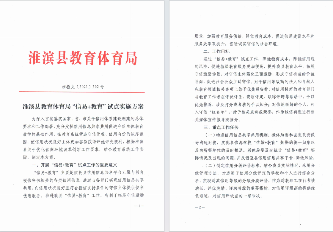 淮滨县教育体育局”信易+教育“试点实施方案