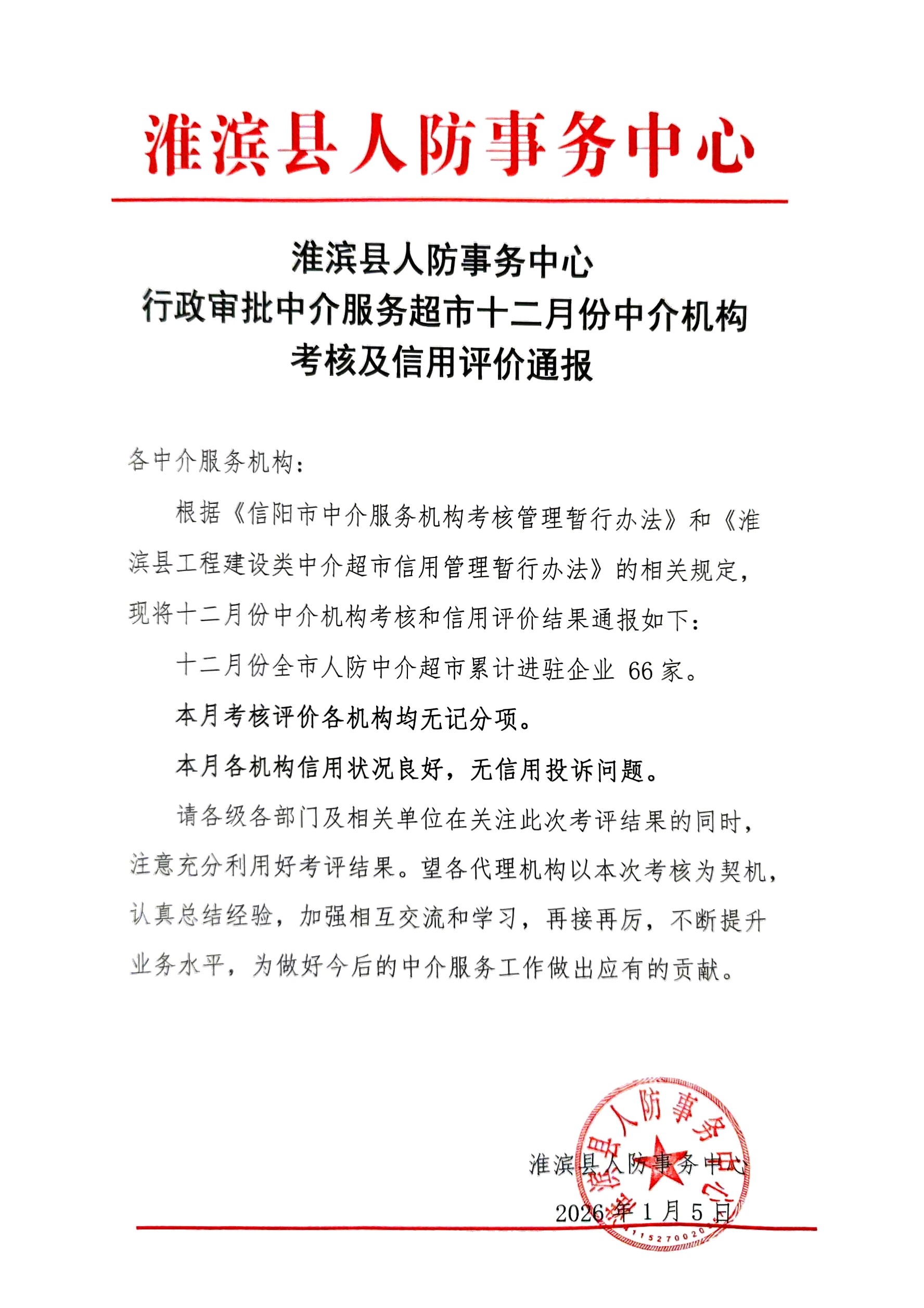 淮滨县人防事务中心2025年12月中介超市考评情况通报